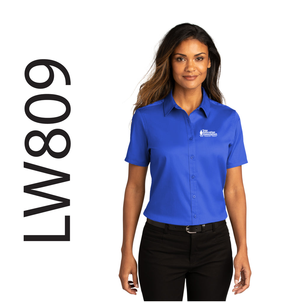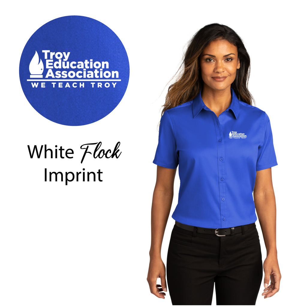 Troy Education Assoc. Port Authority® Women's Short Sleeve SuperPro React™Twill Shirt LW809 / True Royal